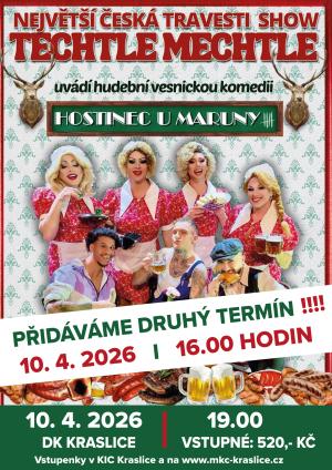 - oblíbená travesti show TECHTLE MECHTLE - místo: DK Kraslice - čas: od 16:00 a 19:00 (dvě představení)